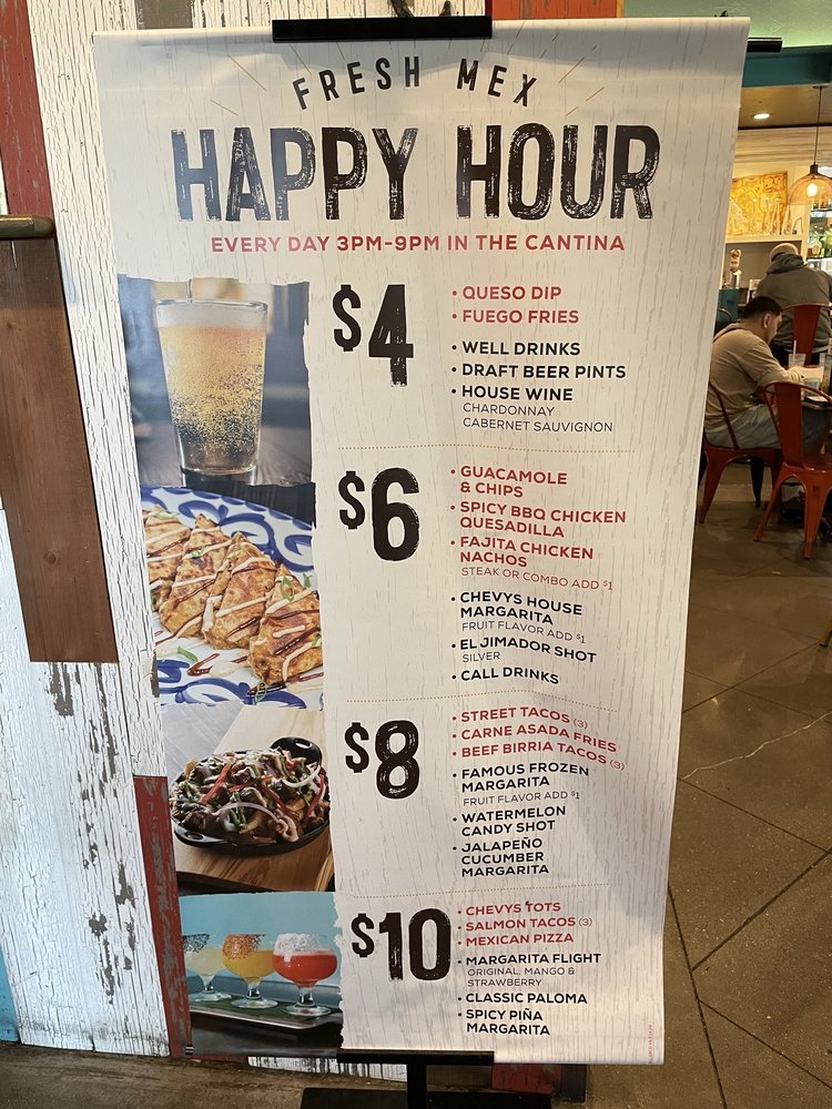 Chevys Fresh Mex is a vibrant Mexican restaurant located in South San Francisco, offering a wide range of delicious dishes with a Tex-Mex flair. The menu features seasonal specials like Al Pastor Chicken and Pork Fajitas, as well as tantalizing options like Beef and Chicken Smothered Burritos, Chipotle Chicken Enchiladas, and Fajita Carnitas Burritos. The restaurant also offers party packs and family fiestas for sharing, making it a great spot for group gatherings. Customers have raved about the Happy Hour menu and the variety of margaritas available. The spacious and lively atmosphere, attentive staff, and complimentary chips and salsa add to the overall dining experience. Whether you're a longtime fan or a new visitor, Chevys Fresh Mex promises a tasty and enjoyable meal with an authentic Mexican touch.